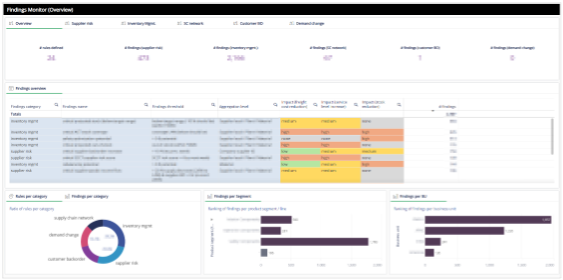 Figure 2: Findings monitor of the Supply Chain Control Tower – automated, data-driven findings are derived to improve cost, service levels and inventories along the supply chain